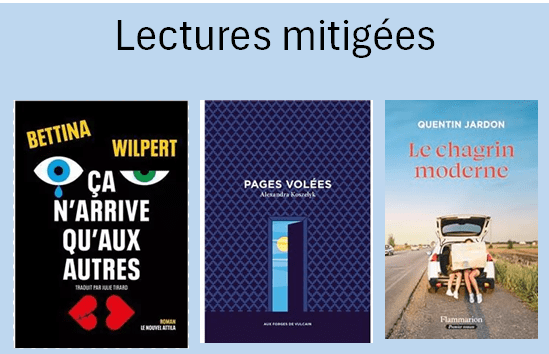 Beaucoup de livres ont été lus ce mois-ci, en grande partie pour la rentrée littéraire et les chroniques n’ont pas toutes été publiées à ce jour. Mais cela ne saurait tarder.