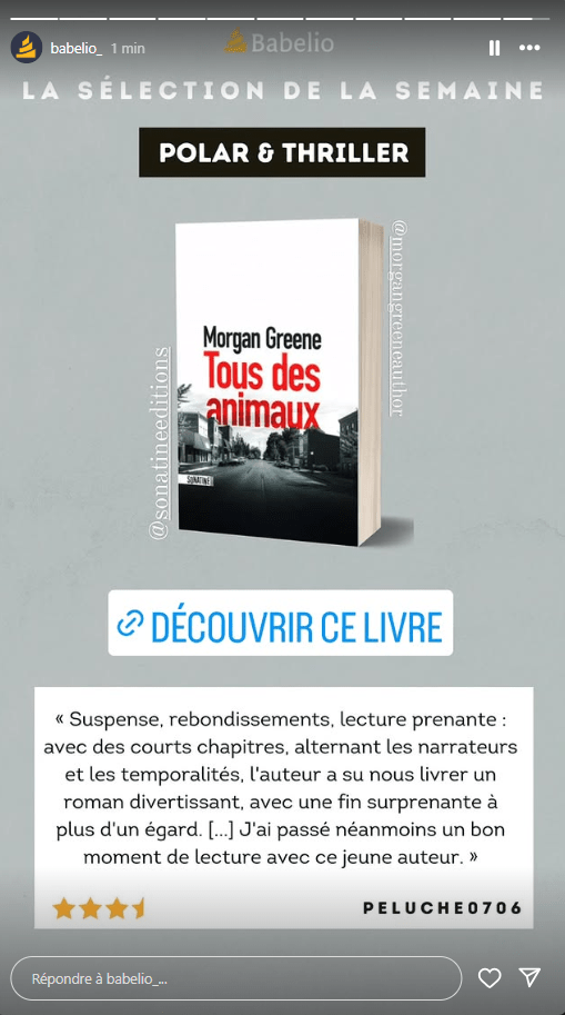 Bravo pour Babelio, ça fait toujours plaisir d’être cité. C’est une plateforme d’échange autour des livres que j’apprécie beaucoup. 🙂
